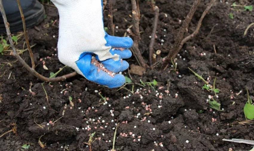 Помимо перегноя, при посадке используют смесь из компоста, калийных и фосфорных удобрений. Опытные садоводы рекомендуют добавить в грунт немного песка и древесной золы (по 250 г на каждый куст).