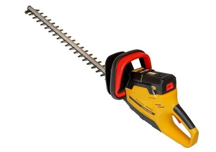 Кусторез, работающий от аккумуляторной батареи. Заряд обеспечивает непрерывную стрижку листвы в течение 80 минут. Срезка ветвей производится двусторонними ножами длиной 55 см. Максимальная толщина реза – 20 мм.