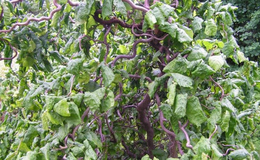 Достаточно популярным растением считается лещина обыкновенная. Она представляет собой куст, который вырастает до 4-6 метров в высоту. Для него характерны крупные красно-коричневые листья. Также они могут иметь темно-пурпурный окрас. Нижняя часть покрыта более светлым пушком, чем верхняя. К осени листва зеленеет.