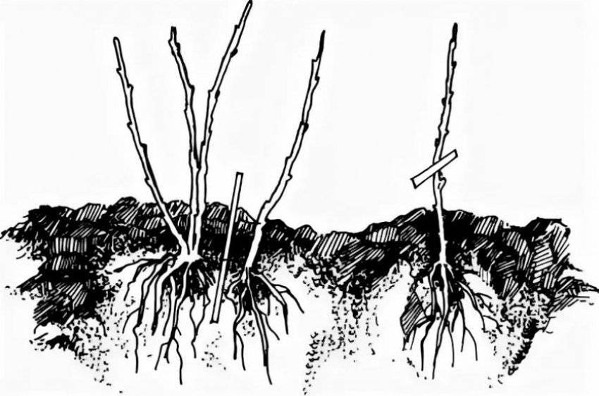 - саженец должен быть установлен в ямку на такую высоту, чтобы корневую шейку разместить на одном уровне с поверхностью почвы, но если растение слабое, то необходимо опустить место, с находящейся прикорневой шейкой, ниже поверхности грунта на 5 см, чтобы стимулировать образование новых корневых отростков.