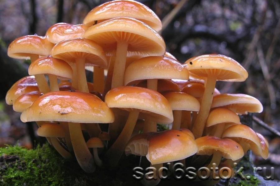 Компактные, и собраны в большие группы. Высота ножки не превышает 15 см, а шляпка достигает диаметра в 7 см.