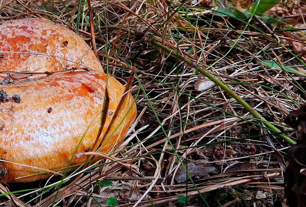 - Сосновые (красные) в хвойном лесу видны издалека. Имеют оранжево-красный, почти морковный цвет. Шляпка диаметром 3-15 см с углублением посередине в виде воронки, имеются концентрические круги. Шляпка гладкая, слизистая, нижняя её часть состоит из пластинок. Произрастают сосновые рыжики в молодых посадках сосны, в посадках лиственницы, встречаются в редких сосновых борах. Предпочитают песчаные почвы.