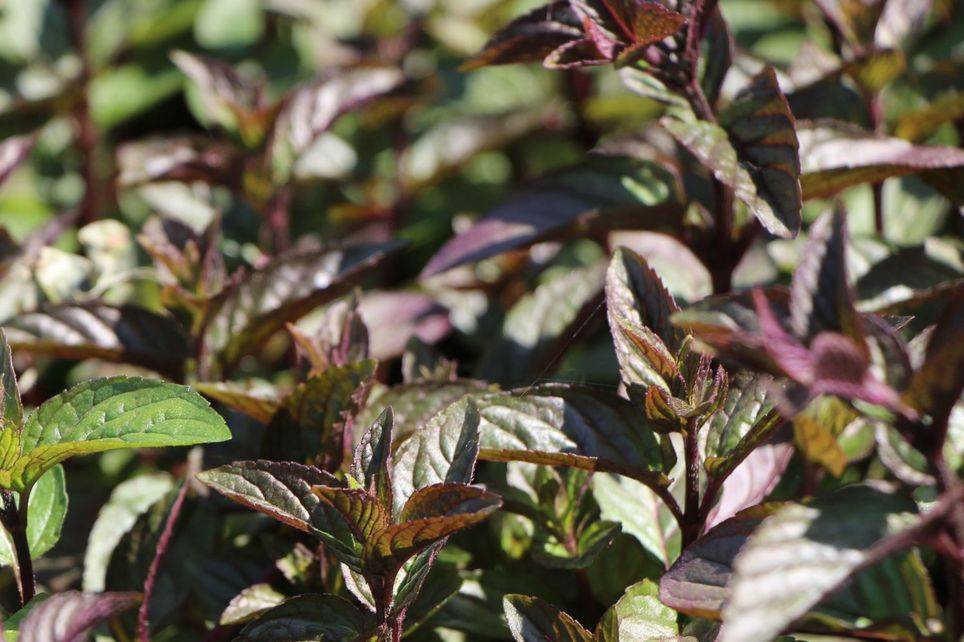 У шоколадной мяты листочки коричнево-фиолетового цвета