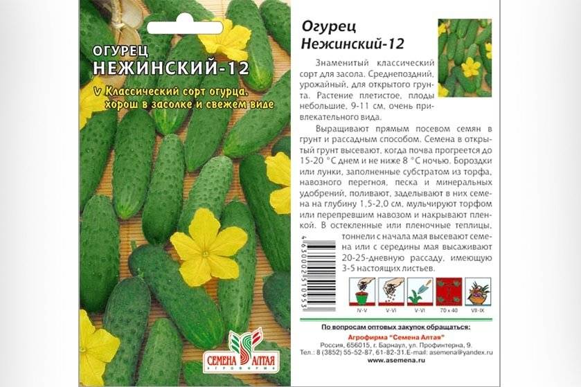 - Нежинский-12. Это растение неприхотливо в уходе, устойчиво к оливковой пятнистости и бактериозу. Дает относительно короткие плоды весом 80-110 г и длиной 100-120 мм. Они имеют крупные бугорки и отличный вкус, подходят для засаливания.