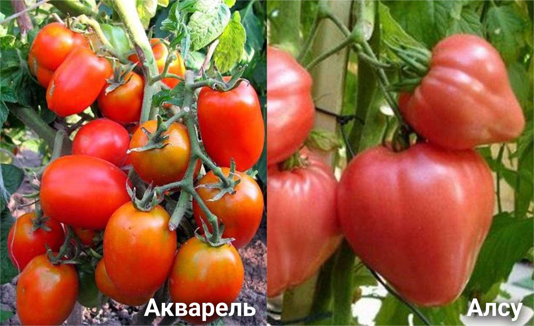 - Алсу. Кусты вырастают до 80 см и дают урожай даже при неблагоприятных погодных условиях, но обязательно требуют подвязки. Томаты почковидной формы созревают 105-110 дней и имеют вес до 500 г (иногда до 800 г).