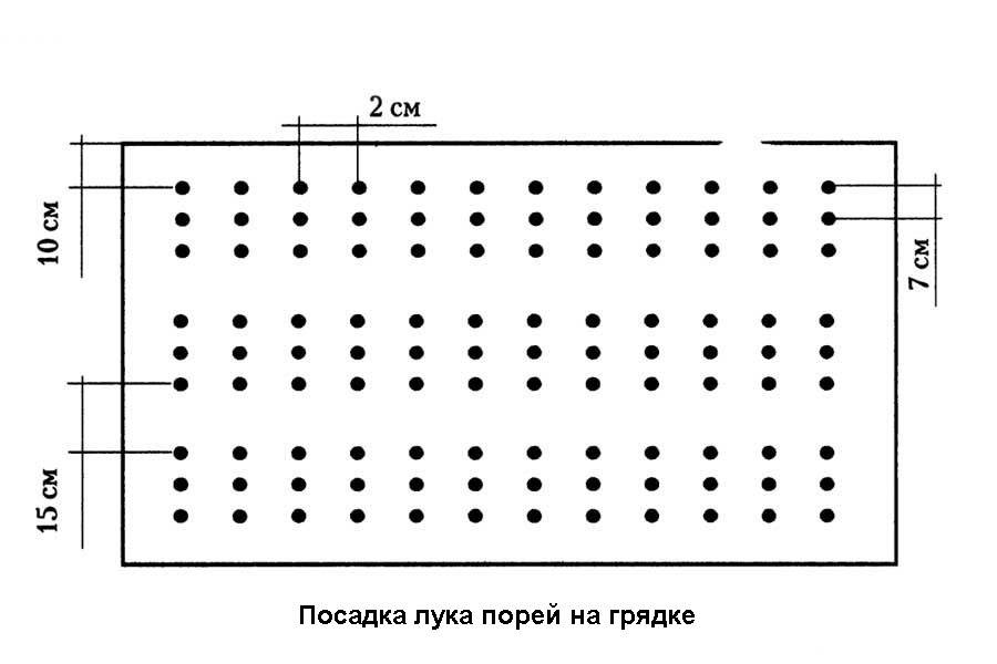 Посев лука-порея лучше производить на узких грядках. Это правило касается не только его, но и большинства овощей. Да и хозяину удобно – компактность огорода дает возможность выращивать максимальное количество культур на небольшой площади. Высевая лук-порей семенами, используют двухрядную или многорядную методики.