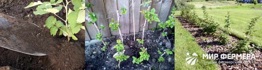 Процесс высадки малины производится в такой последовательности: