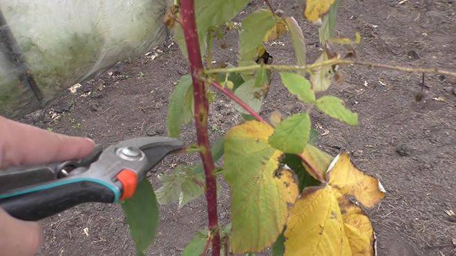 Обрезать кустарник необходимо, прежде чем он дорастет до 3-3,5 м. Желательная высота растения составляет 2-2,5 м. Высокий куст создает дополнительное затенение. За малиной сложнее ухаживать. Обрезка проводится осенью. Нужно дождаться прекращения сокодвижения.