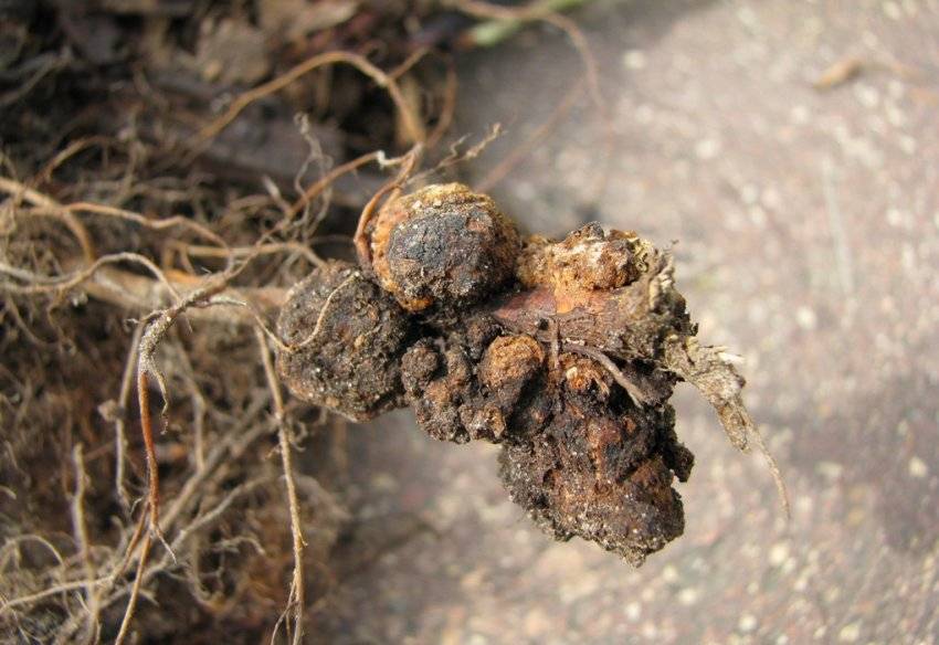 - Корневища кустарника часто поражает корневой рак. Симптомы поражения проявляются крупными наростами на корнях малинника. Для борьбы и профилактики болезни используют медьсодержащие препараты.