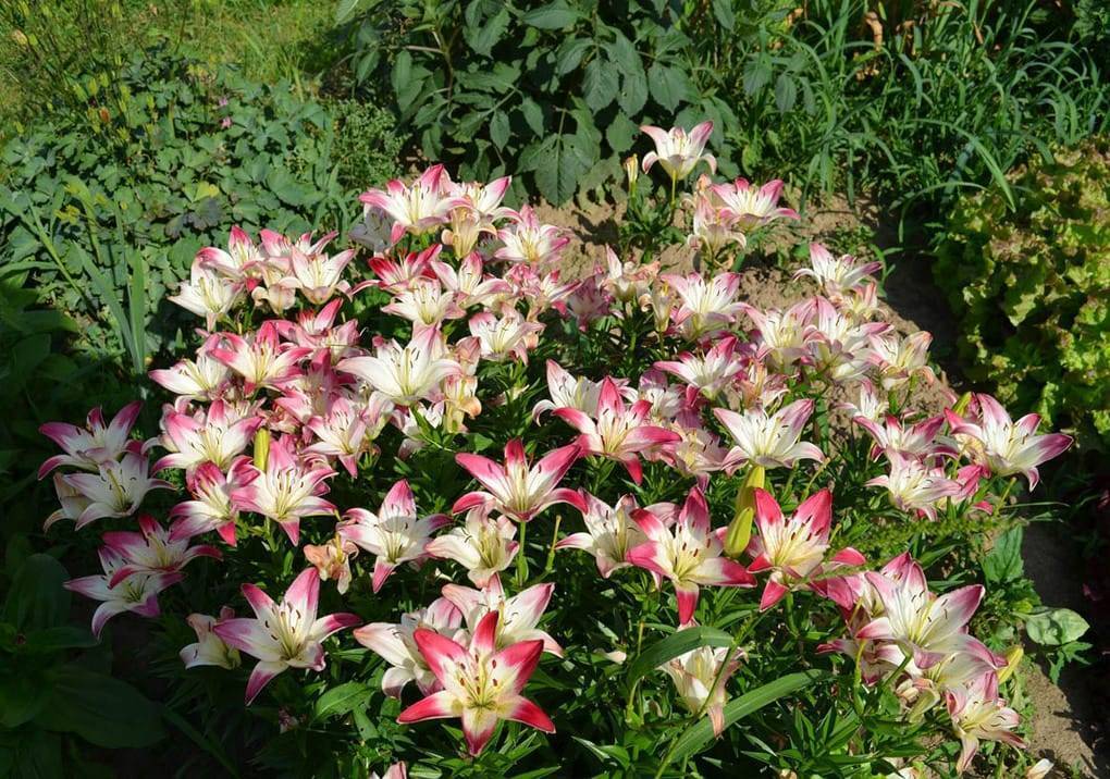 В летний зной буйством красок поражают лилии. Сортов здесь очень много. Это позволяет подобрать для сада различные по окраске и высоте цветы.