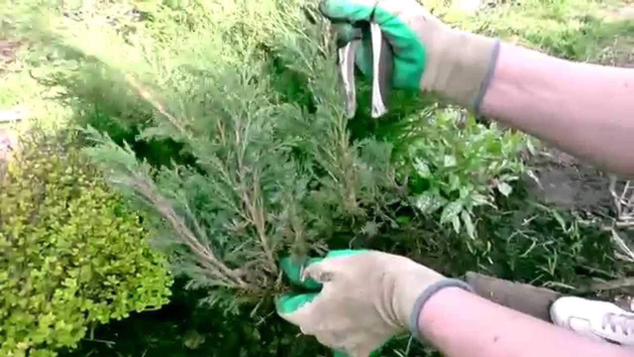 Можжевельник колючие растение, поэтому работайте в кожаных перчатках, чтоб не занозить руки.