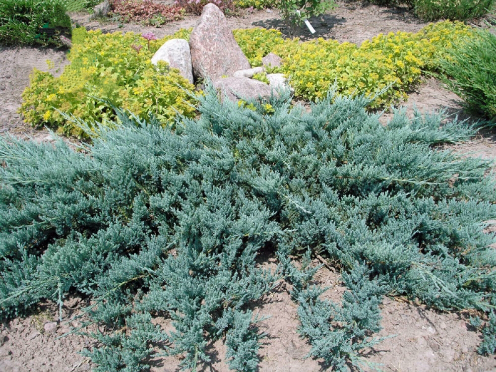 Можжевельник Чешуйчатый Блю Карпет — один из самых востребованных хвойных кустарников; растет быстро, красиво «смыкается» с соседними аналогичными растениями при условии, что они высажены друг от друга не далее, чем на расстоянии 1,5 метра (таков средний диаметр каждого взрослого куста).
