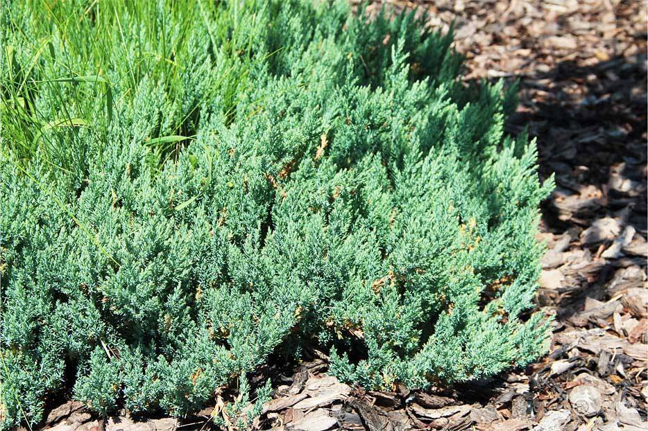 Этот лежачий куст – гордость американской селекции 1967 года создания. Высота этого растения очень редко превышает 15 см. Диаметр куста – 2 м в среднем. Крона отличается плотностью, благодаря чему весь куст выглядит длинным и густым. Хвоя этого сорта имеет вид чешуек. Летом она зелено-голубая, зимой – лилово-синего цвета. Плотно разрастаясь по земле, куст создает собой естественный зеленый коврик. Плод куста – небольшая синяя шишка-ягода, размером до 7 см.