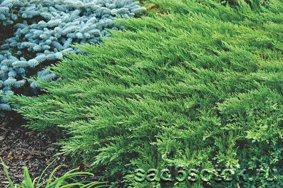 Центральный стебель у можжевельника отсутствует. При посадке побегов корневая система может приживаться до года, и лишь потом ветки идут в рост. Если обрезать боковые стороны, то растение может вырасти в высоту до 30 см. Новые побеги создают слои, отличающиеся по цвету от предыдущих: от сизого дымчатого до светло-зеленого. Со стороны это выглядит очень красиво и необычно.