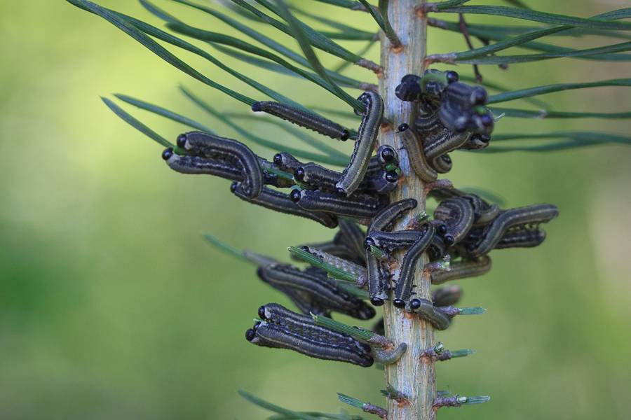 Спасти растение возможно: собирая вручную, привлекая птиц, устанавливая клейкие ловушки-пластины. Грунт в приствольном круге следует тщательно перекопать, чтобы там не остались куколки насекомых. От сухой хвои также необходимо избавиться. Чтобы она не оставалась на участке, — ее сжигают. Если паразиты атакуют, то самым лучшим средством будет применение инсектицидов.
