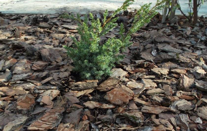Мульчирование не является обязательной процедурой. Чтобы избежать быстрого пересыхания верхнего слоя почвы, реже производить полив и избавиться от сорняков, можно воспользоваться мульчированием. В качестве мульчи используют щепу или сосновую кору.