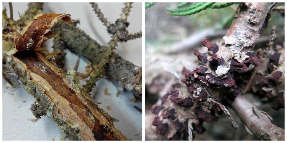 Проявляется болезнь в появлении ржавых наростов на побегах и усыхании хвои. Мерами борьбы станет обрезка повреждённых частей и внесение стимулирующих иммунитет препаратов.