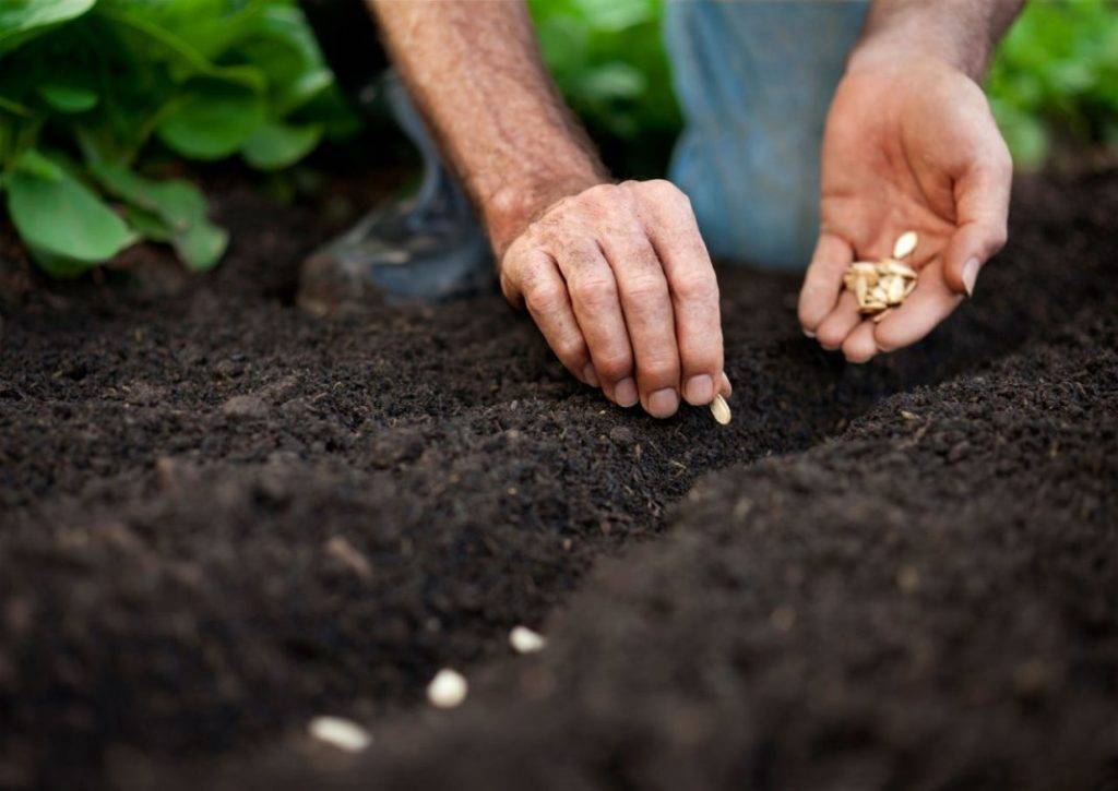 - внесение удобрений при необходимости, семян острым концом вверх;