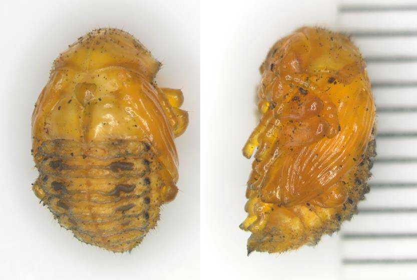 Личинки третьего возраста характеризуются красно-желтым цветом и длиной до 9 мм. Волоски, свойственные первым двум стадиям, на поверхности тела отсутствуют.