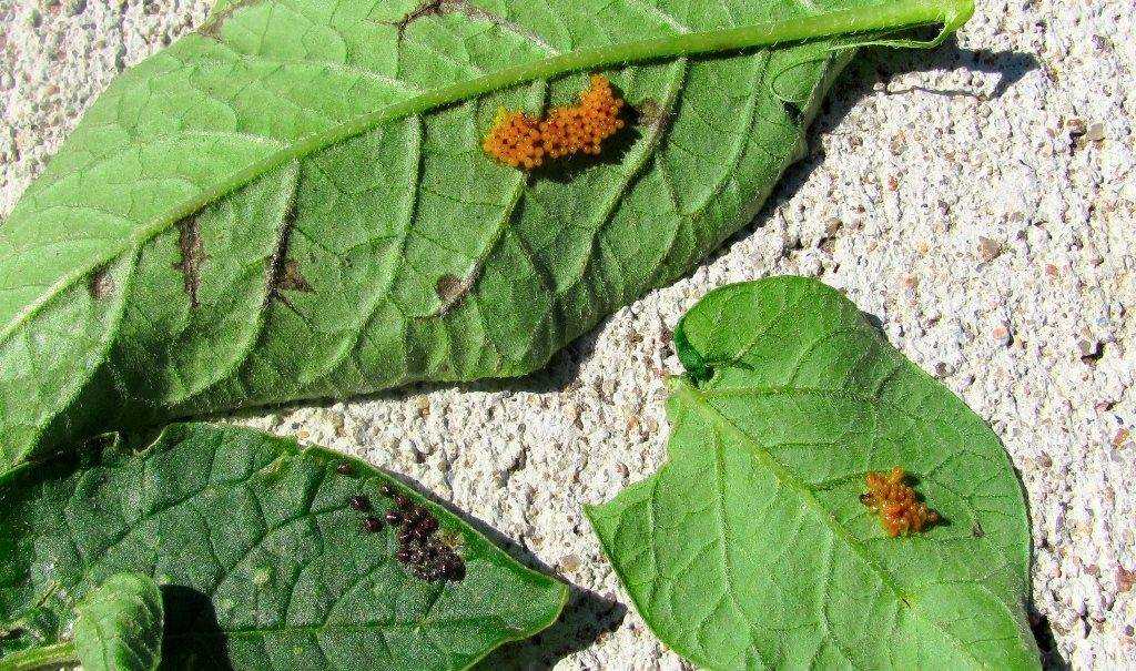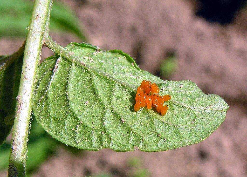 С наступлением тепла перезимовавшие жуки выбираются на поверхность и, набравшись сил, приступают к спариванию. Кладку колорадского жука можно обнаружить на нижней поверхности листа.