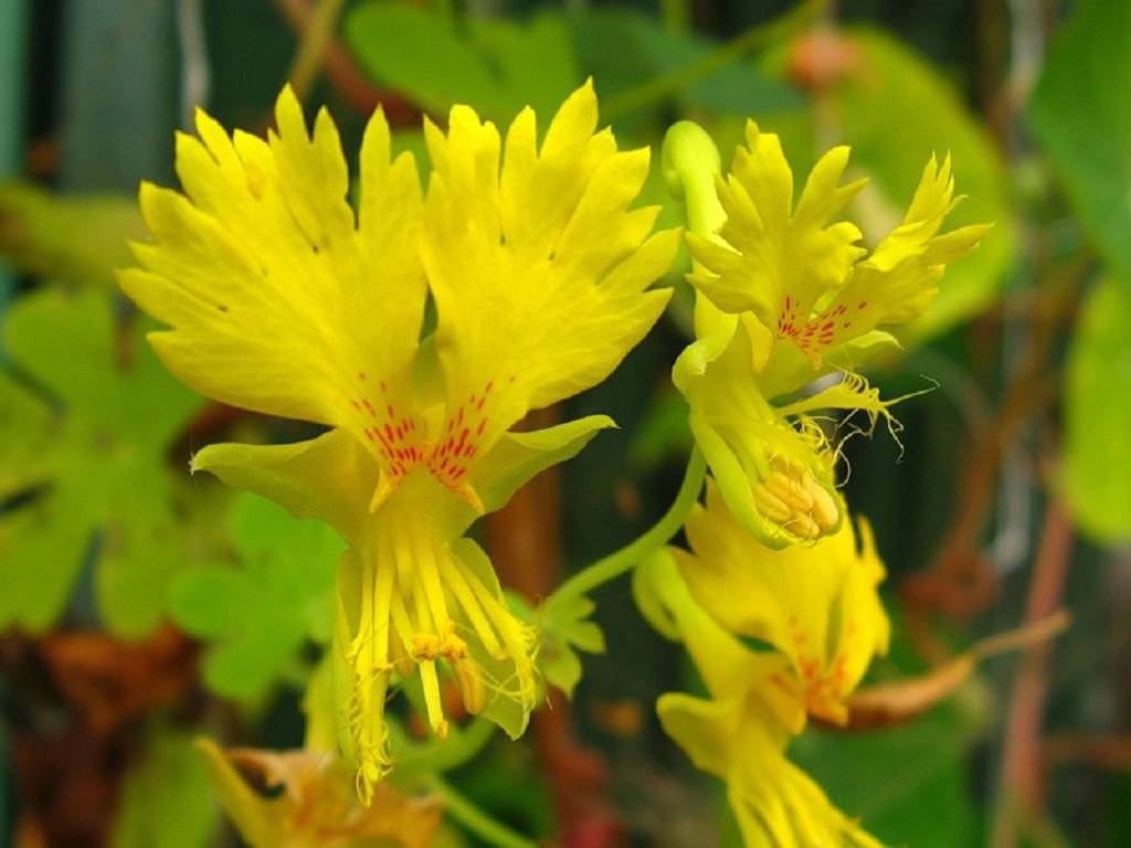 - Канарская лиана достигает в высоту 3,5 метра. Она имеет мелкие цветы ярко-желтого оттенка. Преимущество сорта состоит в длительном цветении, которое начинается с середины лета и продолжается до первых холодов.