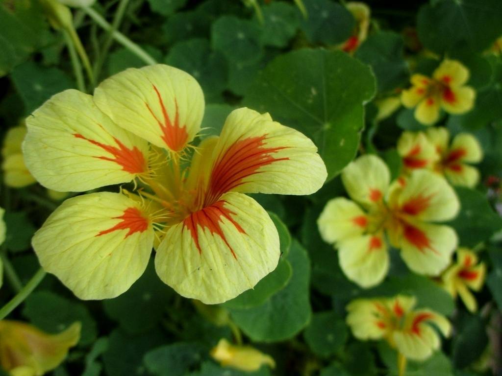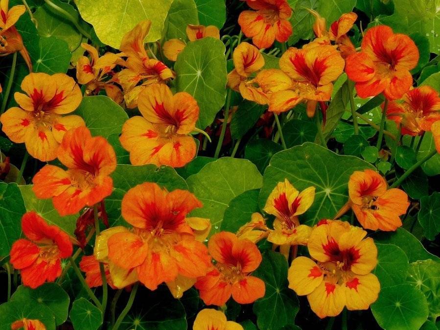 Настурция относится к неприхотливым растениям. Ее часто можно встретить в подвесных кашпо, на клумбах или грядках. Кустовые формы красиво сочетаются как с многолетниками (манжеткой, геранью, флоксами), так и с однолетниками (календулой, циннией, каннами).