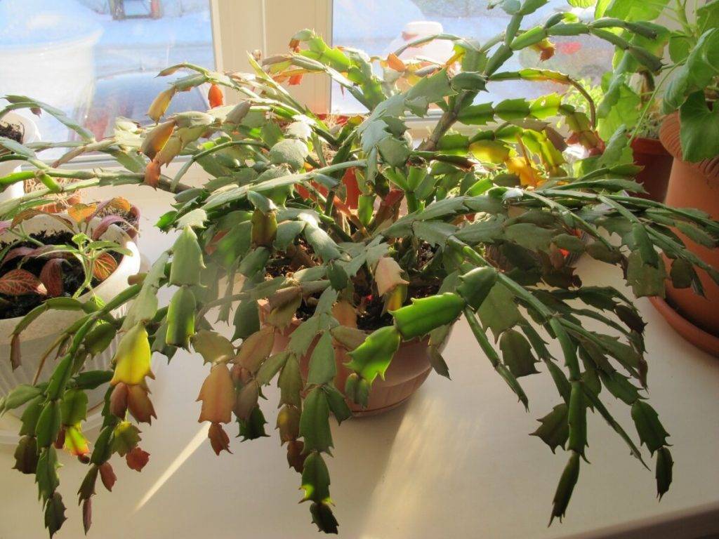 Почему не цветет растение? Оно испытывает перепады температуры. Зигокактус очень любит влажный воздух и прохладу. Хорошо, если летом поставить его в самый затененный участок, вывезя на дачу. Почему декабрист желтеет и блекнет? Истощена почва. Нужно срочно провести пересадку.