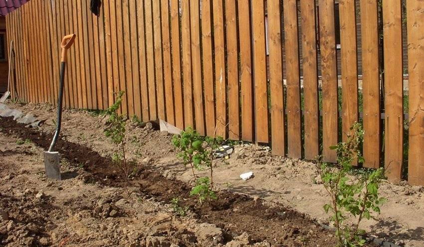 Так как кустам свойственно расползаться, лунки со всех сторон ограждаются шиферными или пластиковыми барьерами.