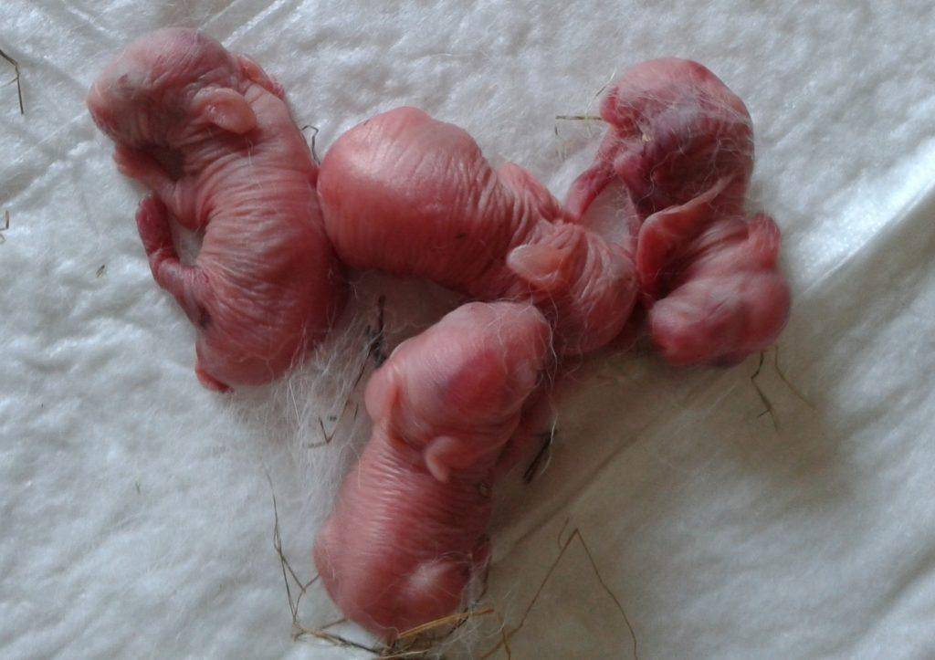 После рождения нужно обязательно осмотреть крольчат. В приплоде может быть много новорожденных, но для нормального выращивания нужно оставлять не более 8 малышей на самку. При осмотре нужно сразу убрать погибших, а за ослабленными кроликами начать ухаживать. «Лишних» крольчат можно подсадить к другой родившей самке или попробовать выкормить искусственно.
