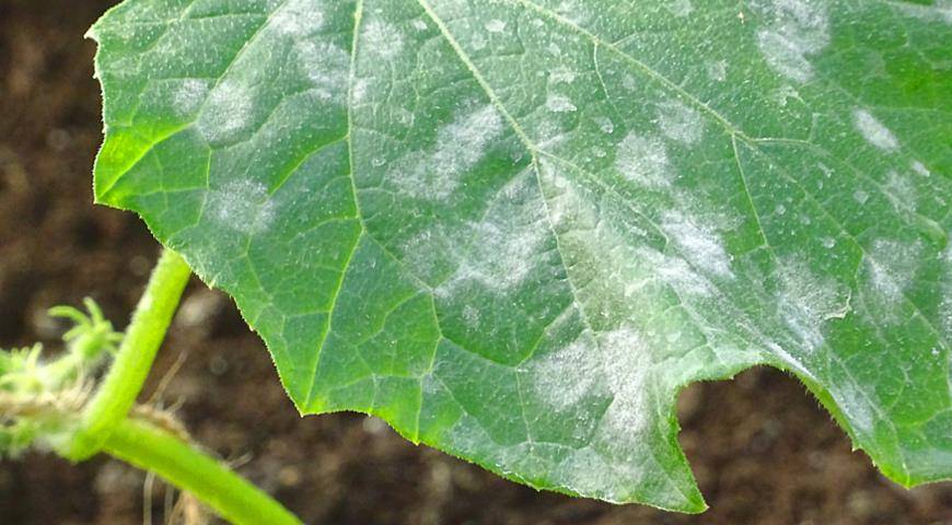 Заболевание грибковой этиологии. Проявляется в виде налета на листьях растениях белесого цвета. Пятна напоминают рассыпанную муку, от чего и пошло название. Постепенно пятна распространяются на всю поверхность листа, плети перестают развиваться и засыхают.