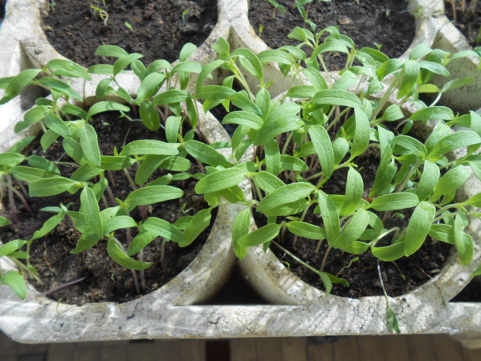 Как только семена взойду примерно на высоту 5-7 сантиметров, необходимо их рассадить или просто проредить. Нужно внимательно рассмотреть всходы, удалить нездоровые растения, а нужные снова рассадить по одному. Это процесс называют пикировкой.