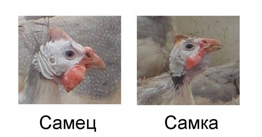 Обычно у одомашненных пернатых самцы крупнее самок. Но в случае с цесарками это правило не работает. Курочки крупнее цесарей примерно на 15–20%. Это легко заметить, если поставить рядом представителей обоих полов.