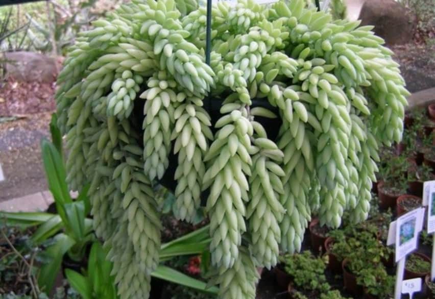 Каждый лист внешне похож на коготь или клык животного, а длинные стебли – на хвост. За это сходство очиток Моргана цветоводы часто называют ослиным или обезьяним хвостом.