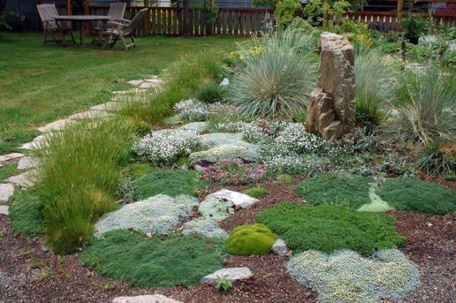 Выстраивают ковровые цветники, сочетая разные сорта очитков. Таким способом прячут неказистые уголки клумбы, строительный мусор и другой хлам.