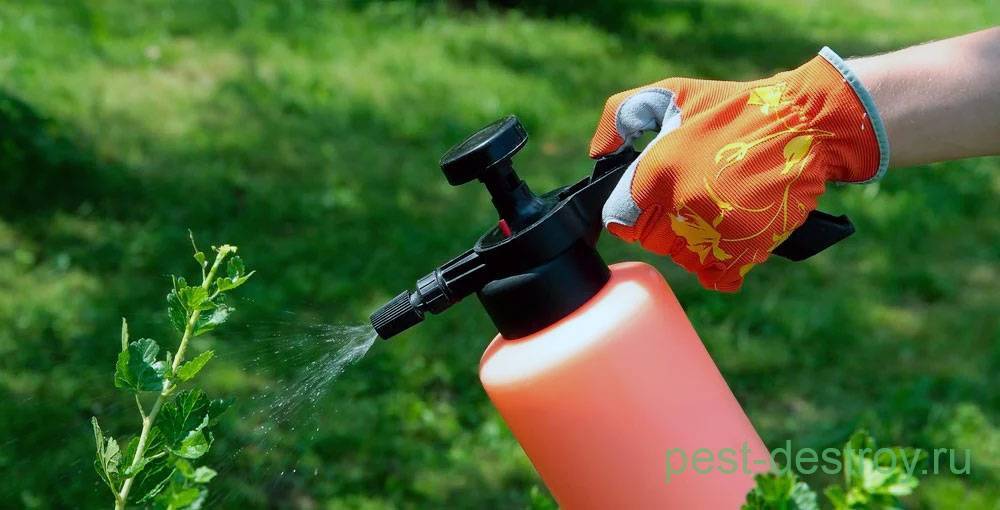 Для приготовления рабочего раствора 250 миллилитров 9-% уксуса разводят в в 10 литрах воды. Полученным средством кусты опрыскивают сразу после цветения.