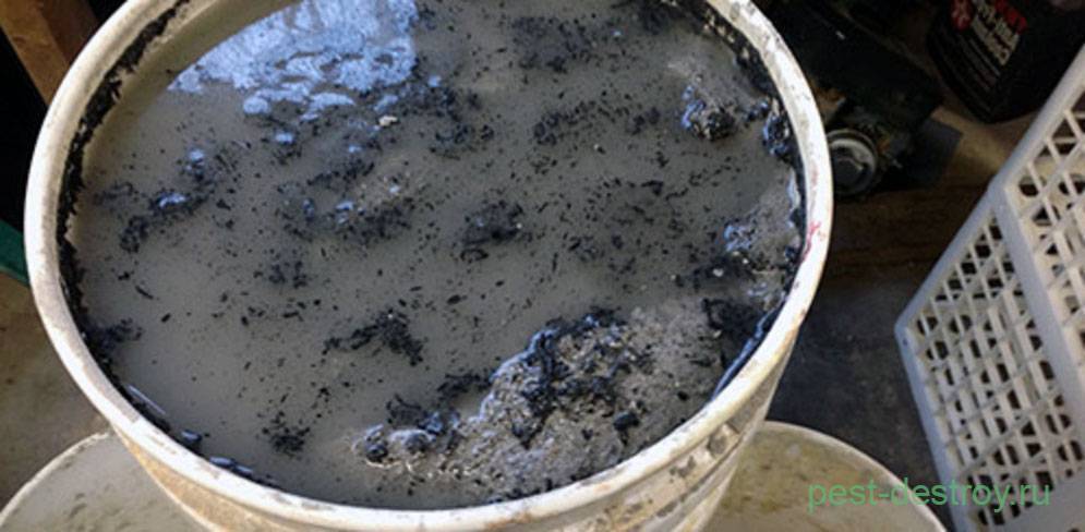 Из золы готовят щелочной раствор, чтобы обработать им кусты. Для этого нужно насыпать в ведро ⅓ золы и налить туда воды доверху. Далее состав настаивают 48 часов и процеживают.