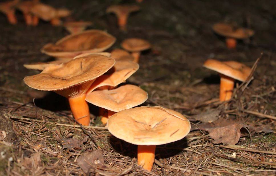 - Рыжики. Имеют воронкообразную шляпку, покрытую оранжевой кожицей. Такого же цвета ножка цилиндрической формы.