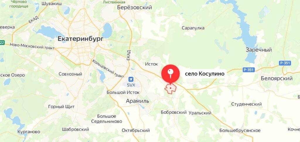 Оно находится по Московскому тракту в 20 км от Екатеринбурга.