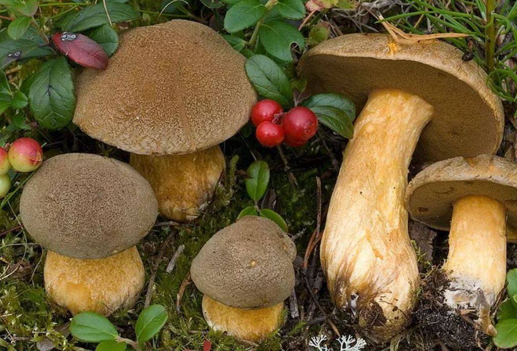 - Подберёзовики. Грибы с плотной широкой шляпкой тёмно-коричневого окраса и стройной сероватой или бежевой ножкой. В отличие от подосиновиков, срез подберёзовиков не темнеет. Растёт преимущественно в смешанных лесах.
