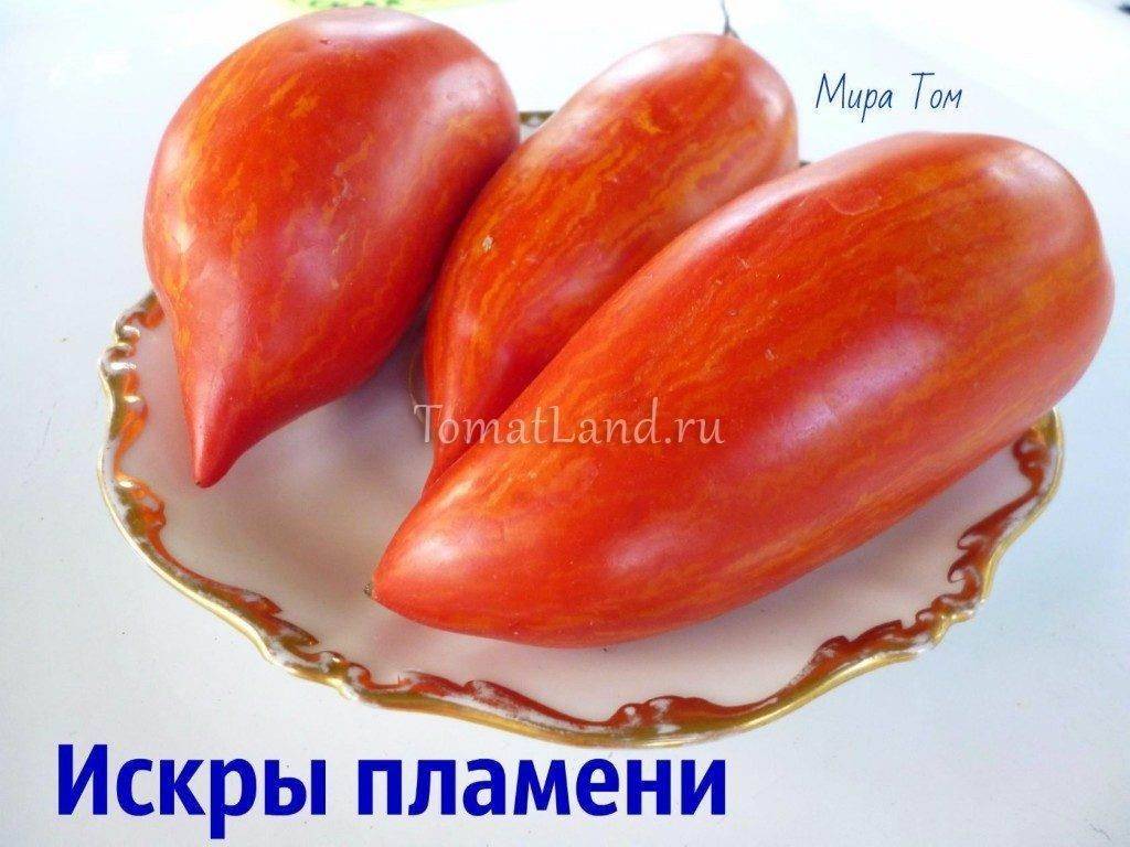 Среднепоздний, очень урожайный, индетерминантный (с неограниченным ростом) сорт томата для теплиц. Куст высокорослый, требует подвязки и пасынкования. Хороший результат при выращивании в 2 стебля. Томат Искры пламени в 2015 году включен в Госреестр по Российской Федерации для выращивания под плено…