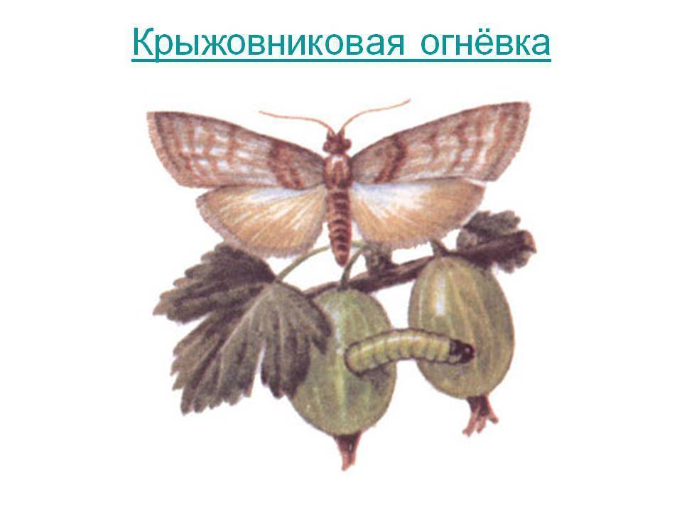 Крыжовниковая огневка причиняет огромный вред кустам смородины и крыжовника. Опутанные паутиной кусты и поврежденные побуревшие ягоды имеют неприглядный вид. Внимательно осмотрев плоды крыжовника или смородины можно заметить на них небольшие отверстия, из которых к соседним ягодам тянутся паутинки. Если вовремя не принять меры и не начать борьбы с вредителем, то причиняемый вред может принять катастрофических масштабов.