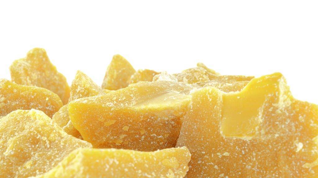 Сырьевой материал получают в процессе перетапливания и процеживания сот и обрезов непосредственно на пасеке. Для достижения чистого желтого оттенка потребуется проведение нескольких повторных процедур. Заливается в формы. После остывания и извлечения уже полностью готов к употреблению.