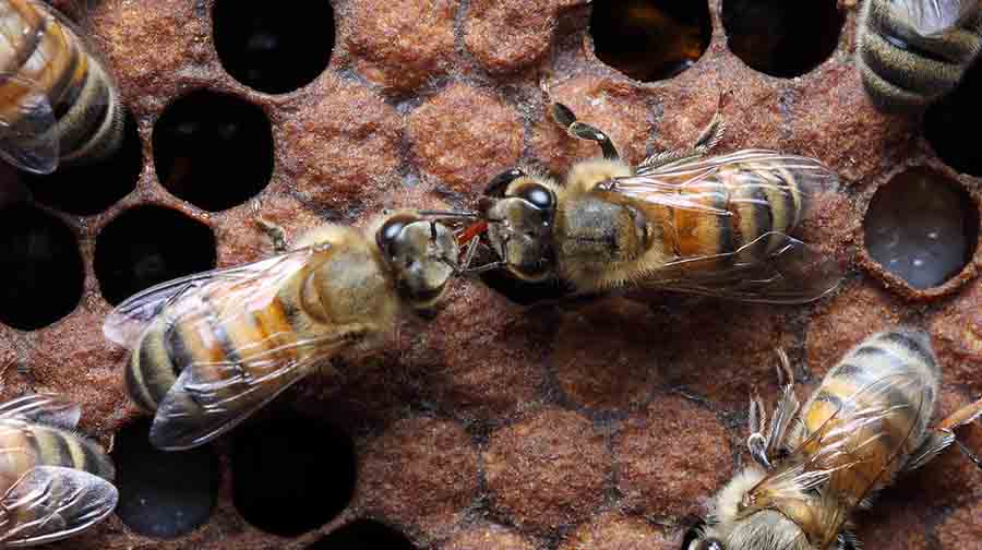 Одна из главных причин гибели пчел во время зимовки – Варроатоз. Это серьезное клещевое заболевание, способное в кратчайшие сроки погубить всю пасеку. Клещ питается лимфой, его можно увидеть невооруженным взглядом – маленькая черная точка на тельце насекомого или его личинки. Если заразится одна пчелосемья, болезнь очень быстро перекинется и на другие. Напад чужих пчел на улей может повлечь за собой подобный недуг.