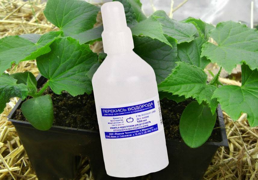Для полива и опрыскивания рассады огурцов в одном литре чистой воды разводят столовую ложку перекиси. Для обработки взрослых растений готовится больше раствора: на десятилитровое ведро воды вливают 10 столовых ложек средства.