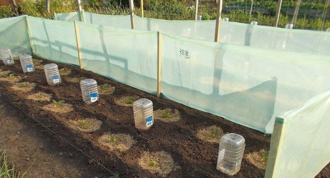 Оригинальная грядка из бутылок для баклажанов. В случае похолодания ее можно накрыть агроволокном