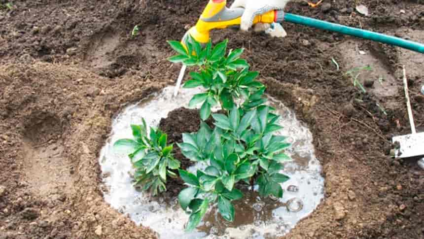 Чтобы растение хорошо адаптировалось к новым условиям, углубление нужно на 2/3 наполнить садовой землей, торфом, песком и перегноем. Также стоит внести 1 кг древесной золы и 300 г суперфосфата.
