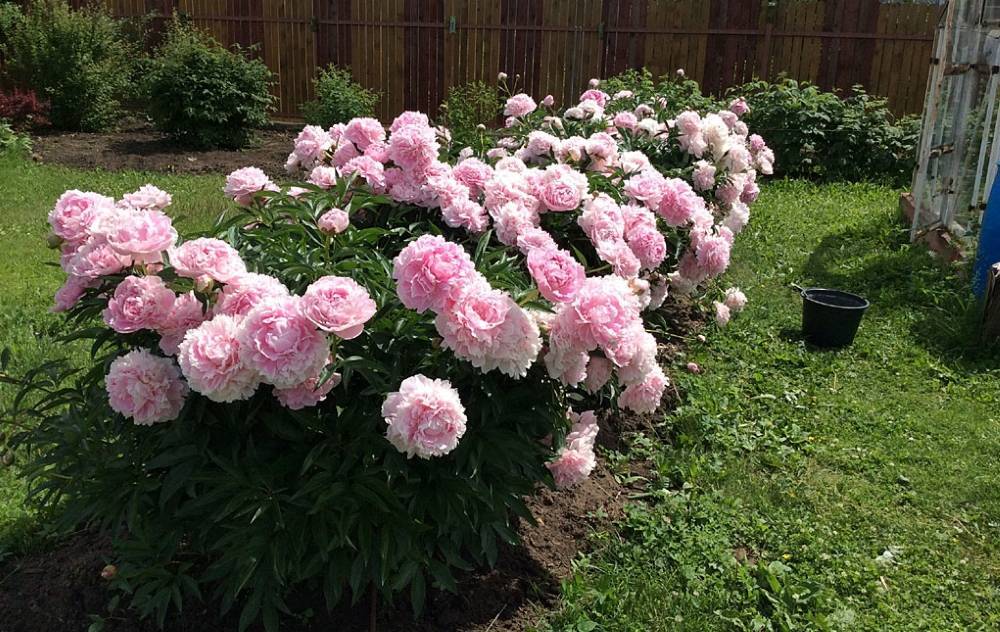 Опытные садоводы сажают пионы подальше от строений. Тепло, которое исходит от стен, отрицательно сказывается на состоянии культуры. Оптимальный интервал должен составлять 2 м.