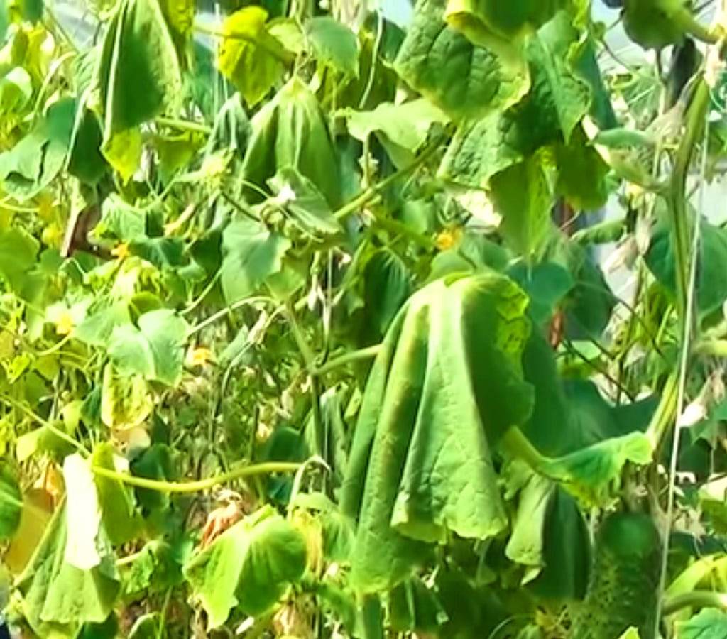 Как видно на фотографиях, при этой болезни огурцов на пораженных растениях развиваются морщинистые, редуцированные листья, количество женских цветков и плодов уменьшается: