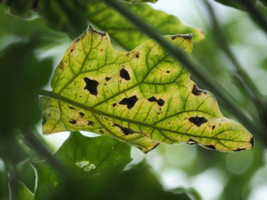 Как выглядит такая солнечная болезнь? На верхней части листиков появляются желтые точки или участки.