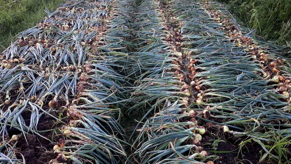 Внимание! В июле полив постепенно сокращают, чтобы к уборке лук успел вызреть.